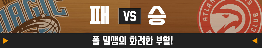 애틀랜타 호크스가 다시 도약하고 있다. 7연패 수렁에서 벗어난 뒤 2연승을 거두며 힘찬 날갯짓을 하고 있다. 무엇보다도 폴 밀샙의 부활이 반갑다. 슬럼프를 겪고, 부상을 당하는 등 부진했던 밀샙은 최근 두 경기에서 22.0점 11.5리바운드 4.0어시스트 2.5스틸 3.0블록 FG 59.3%를 기록하는 등 펄펄 날고 있다. 그의 부활이 곧 이 팀의 부활이다. 반면 잘나가던 올랜도 매직은 3연패를 당하며 기세가 완전히 꺾였다. 뛰어난 수비팀답지 않게 최근 세 경기에서 평균 115.7점을 내주며 무너지고 있다. 니콜라 부세비치, 비스맥 비욤보의 출장 여부가 불확실한 것이 아쉽다.