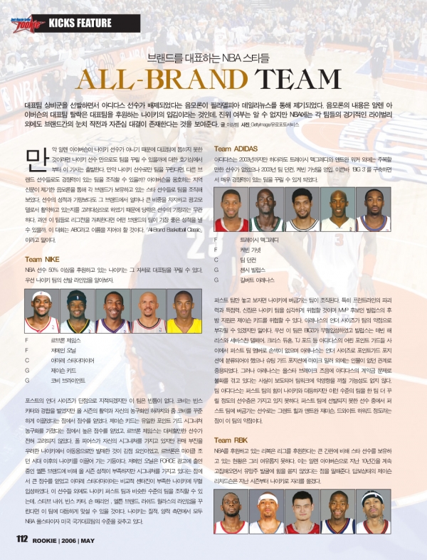 브랜드를 대표하는 NBA 스타들 - ALL BRAND TEAM (2006. 05) 염용근 rookiemagazine@gmail.com 다른기사 보기 저작권자 © ROOKIE 무단전재 및 재배포 금지 당신만 안 본 뉴스 [포토] 하지원 치어리더 '단발 여신' [포토] 우수한 치어리더 '걸그룹 포스' [25드래프트] ‘루키’의 예상 공개! '농구학자' 손대범 해설위원과 ‘저주 그 자체’ 민준구 기자의 의견까지 들어봤다 허훈의 오른손에 가격 당한 정성우의 안면, 파울에 대한 판독은 할 수 없었다... 그러나 아쉬운 점은? '이럴 수가' 듀란트 GSW행-보스턴 빅3-돈치치 LAL행도 제쳤다→21세기 NBA 최고 이적은? 르브론 '디시전 쇼' '초비상' KCC, 송교창 & 최준용 & 허웅 21일 오전 병원 검진 예정 '또 연패!' 위기의 GSW 향한 전직 올스타 냉정 평가 "쿠밍가? 포지엠스키? 전혀 팀 미래 아냐"→"커리와 뛸 스타 데려와야" [포토] 하지원 치어리더 '단발 여신' 라이브리 댓글 작성을 위해 JavaScript를 활성화 해주세요 주요기사 올해까지 1부 소속이었던 조선대, 내년부터 2부에서 농구부 운영한다... 선수들의 미래는? "커리도 15년 뒤면 불안할 수도?" 경기당 3점슛만 무려 3.7개→역대급 페이스 신인 향한 레전드 슈터 극찬 아시아컵 부상 아쉬움 털어낼까... 중국전 앞둔 韓 국대 메인 가드 이정현 "기대도 되고 설레네요" "팬들 오시면 더 힘이 날 것 같다고..." 선수들 의견 반영된 대표팀 연습경기 개방 "덕분에 책임감-자부심 커져" '클러치만 되면 와르르' 강팀 판독기 미네소타의 슬픈 현주소 100포제션 시대의 그늘…인간의 몸은 기계가 아니다