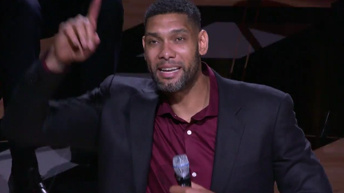 이어 마누 지노빌리가 마이크를 잡았다. 지노빌리는 "던컨 덕분에 집에 4개의 NBA 챔피언 반지가 있다. 나를 더욱 성장하게 만들어줘서 고맙다"라고 말했다. 이어 데이브 오덤 웨이크 포레스트 대학 감독이 마이크를 잡았다. 그는 던컨의 대학 시절 스승이기도 하다. 그는 4년 동안 던컨을 가르쳐서 고마웠다며 던컨에게 축하 인사를 건넸다.