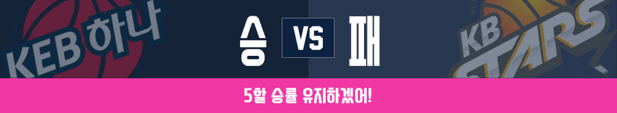 KEB는 최근 2연패를 기록 중이다. 이날 경기에서 패배하면 9승 10패로 삼성생명과 공동 2위가 된다. KB 역시 2연패 수렁에 빠졌다. 이날 승리하면 공동 4위로 올라갈 수 있다는 점에서 두 팀의 박빙 승부가 예상된다.
