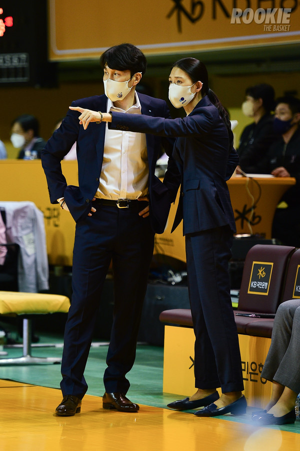 위성우 감독, 전주원 코치 (신한은행 코치 시절)