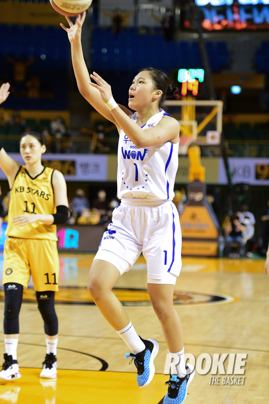 12일 청주실내체육관에서 '삼성생명 2021~2022 여자프로농구’ 청주 KB스타즈와 아산 우리은행의 챔프전 2차전 경기가 열렸다. 우리은행 박지현이 슛을 시도하고 있다.