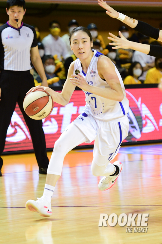 12일 청주실내체육관에서 '삼성생명 2021~2022 여자프로농구’ 청주 KB스타즈와 아산 우리은행의 챔프전 2차전 경기가 열렸다. 우리은행 박혜진이 골밑 돌파를 시도하고 있다.