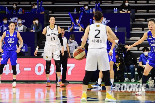 14일 이순신빙상장체육관에서 '삼성생명 2021~2022 여자프로농구’ 아산 우리은행과 청주 KB스타즈의 챔피언결정전 3차전 경기가 열렸다. KB스타즈 박지수가 패스를 기다리고 있다.