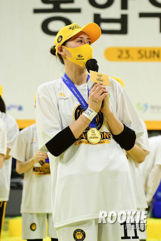 KB스타즈의 슈터 강이슬이 우승에 일조하며 그동안 짊어지던 '무관의 여왕'이라는 타이틀을 벗어던지고 리그 최고의 선수로 거듭났다.