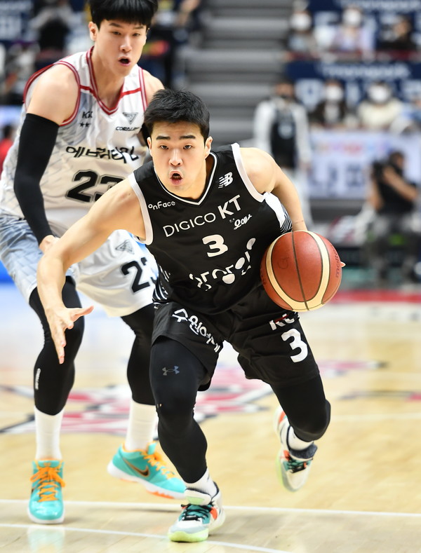 KT의 가드 정성우는 이날 경기에서 25분 1초 동안 3점슛 4개 포함 16점 4리바운드를 올리며 팀 승리에 일조했다. 특히 팀이 다소 위기에 몰렸던 3쿼터에만 3점슛 2개 포함 10점을 몰아넣으며 흔들리는 KT의 중심을 잡았다.