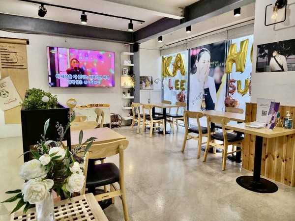 상수역 근방에 위치한 「카페어스」에는 지난 23일부터 24일 오후 7시까지 강이슬에 대한 애정이 가득 담긴 사진과 영상이 가득했다. 이곳에는 이번 이벤트를 계획한 리수 씨의 사랑이 듬뿍 담겨 있었다. 특히 컵홀더, 폴라로이드 카드, 스티커, 이슬네컷 등 다양한 특전이 있었는데 모두 직접 제작한 것이라고 한다. 특히 강이슬이 직접 스페셜 메뉴로 선정한 ‘아토츄(아기토끼츄리) 세트’는 큰 인기를 얻었다. 아! 츄리는 팬들이 강이슬을 부르는 애칭이다.