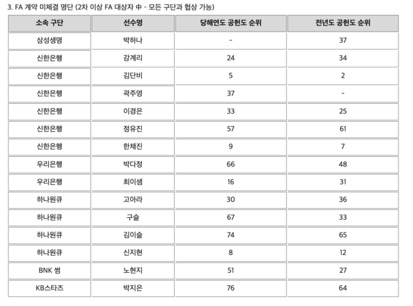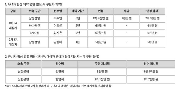 2022 WKBL FA 1차 협상 결과가 발표됐다.