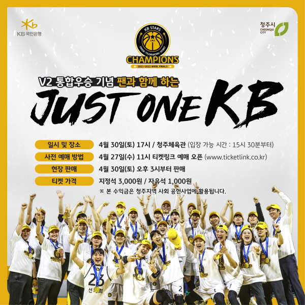 4월 30일(토) 오후 5시 청주체육관에서 진행되는 ‘JUST ONE KB’는 홈 팬들과 함께 시즌을 마무리하겠다는 약속을 지키고, 팬들의 성원에 보답하기 위해 기획되었다.