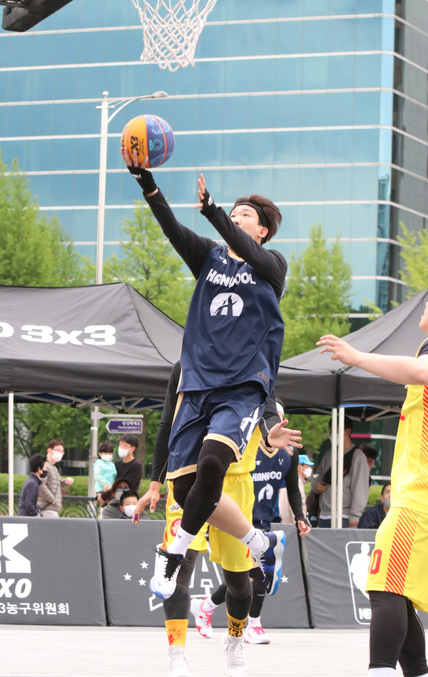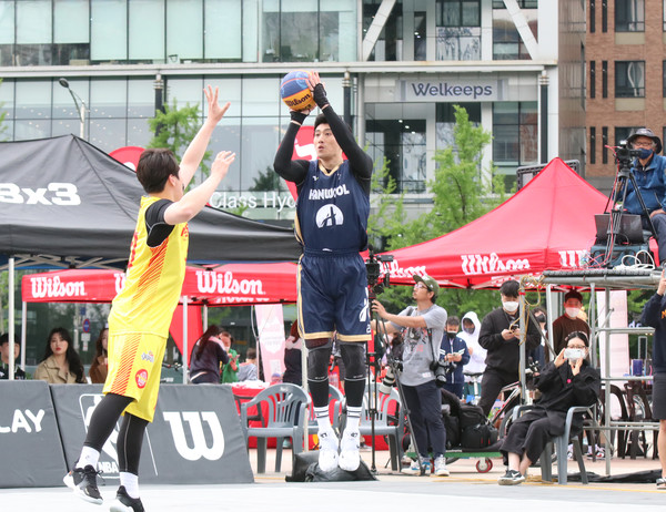 30일 서울 올림픽공원 평화의 문 광장 특설코트에서 열린 '2022 AABxKXO 3x3 서울투어 및 KXO, WKXO 1라운드‘ KXO리그 예선에서 최윤호가 신들린 듯한 2점슛을 터트린 한울건설이 하늘내린인제를 21-16으로 꺾는 이변을 일으켰다.