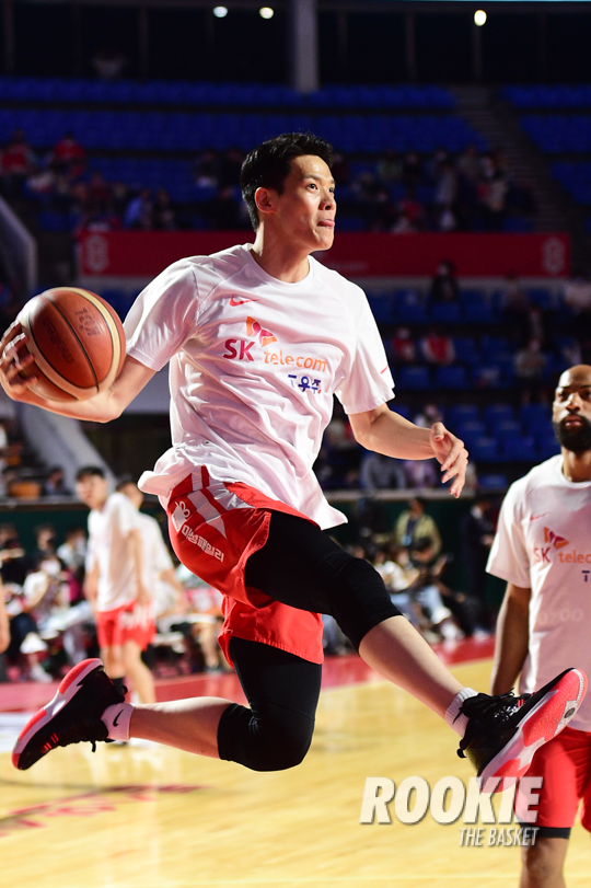 10일 잠실학생체육관에서 '2021-22 KGC인삼공사 정관장 프로농구’ 서울 SK나이츠와 안양 KGC인삼공사의 챔피언결정전 5차전 경기가 열렸다. SK나이츠 김선형이 경기에 앞서 몸을 풀고 있다.