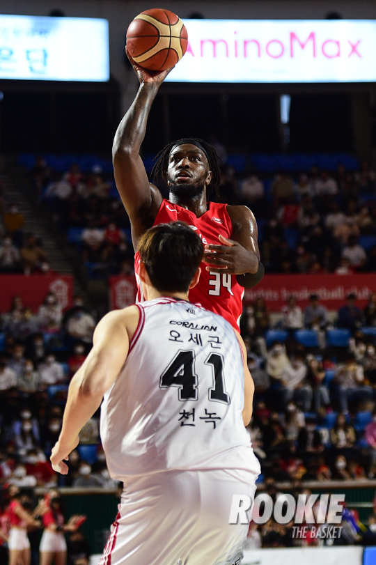 10일 잠실학생체육관에서 '2021-22 KGC인삼공사 정관장 프로농구’ 서울 SK나이츠와 안양 KGC인삼공사의 챔피언결정전 5차전 경기가 열렸다. SK나이츠 워니가 플로터 슛을 시도하고 있다.