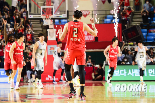 김선형이 20점 7리바운드 7어시스트로 맹활약했다. 최준용 역시 21점 10리바운드를 보태며 팀 승리를 이끌었다. 자밀 워니는 28점 11리바운드로 더블-더블 활약을 선보였다. KGC에서는 전성현이 19점을 올렸으나 팀은 아쉬운 패배를 당하고 말았다.