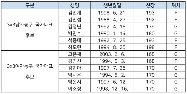 *FIBA 3x3 아시아컵 2022 남녀 3x3 대표팀 1차 명단*
