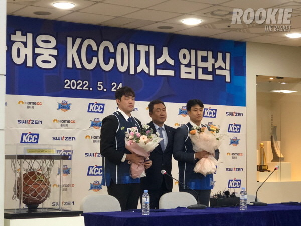 전주 KCC 이지스는 24일 서초동 KCC 본사에서 FA 이승현과 허웅의 입단식을 열었다. 구체적인 계약 조건도 이날 밝혀졌다.
