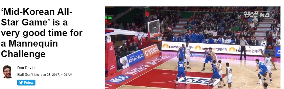 '야후 스포츠', 'SI' 등 여러 언론은 25일(한국시간) 2017 KBL 올스타전 당시 마네킹 챌린지 아이디어를 극찬하는 기사를 보도했다.