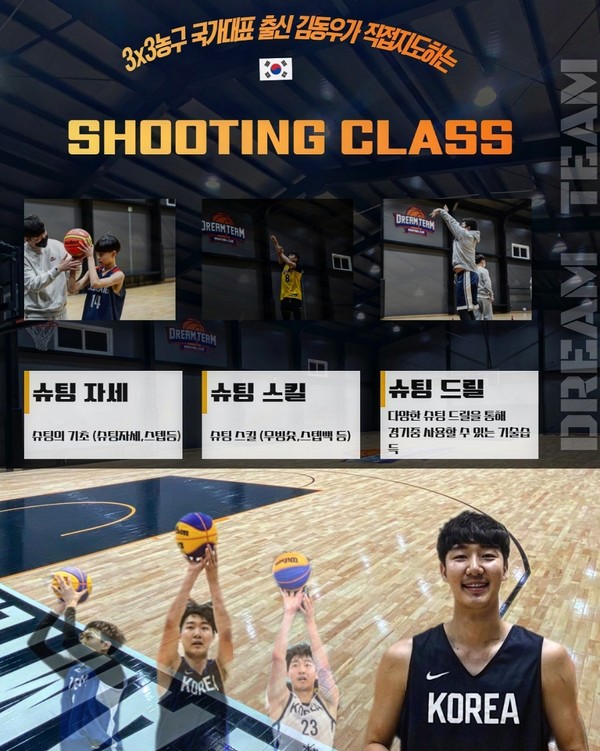 개강 소식을 전하며 김동우 원장은 “내 강점이 슛인데, 청주에서 7년 정도 농구교실을 하다 보니 슛에 고민이 있는 동호인분들이 생각보다 많았다. 예전부터 생각했던 수업인데, 마침 월요일에 체육관이 비는 시간이 생겨서 활용하고자 슈팅 클래스를 마련했다”며 그 배경을 밝혔다.