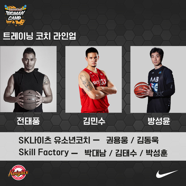 이들을 지도할 코치로는 전태풍, 김민수, 방성윤 등 SK 출신 레전드와 박대남 코치 등 스킬 팩토리 소속 전문 스킬 트레이너 코치 3명, 그리고 권용웅, 김동욱 SK유소년 코치 등이 참가해 유망주들을 지도할 예정이다.