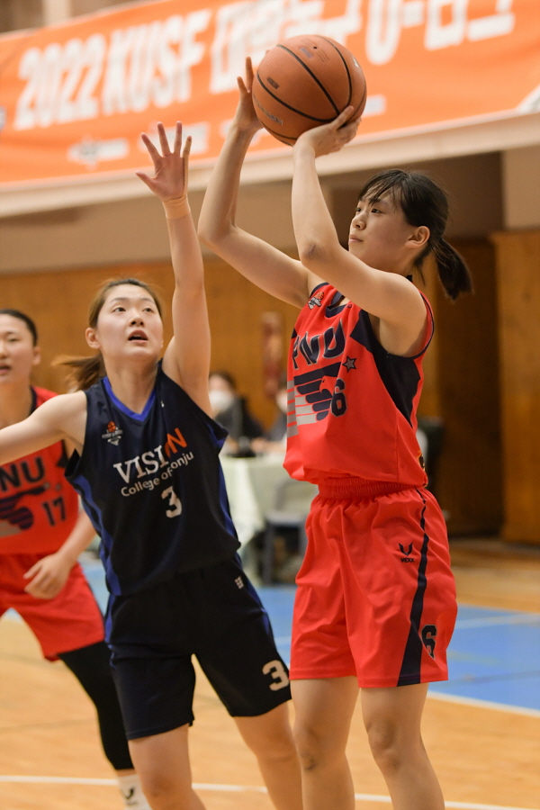 부산대는 부상에서 복귀한 박인아가 14점 15리바운드 5어시스트로 더블더블을 기록했고, 박다정이 14점 9리바운드, 황채연이 12점, 김새별이 10점 7리바운드를 기록하며 승리를 낚았다.