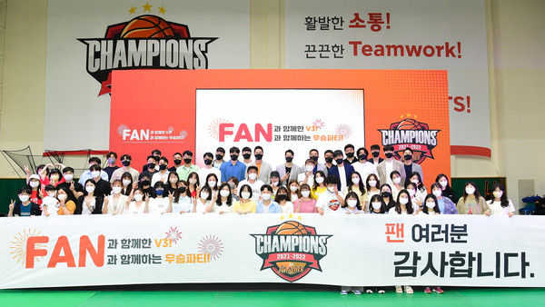 11일 SK의 양지체육관에서는 ‘FAN과 함께 한 V3! FAN 과 함께 하는 우승 파티!’ 행사가 열렸다. 이날 행사에는 SK의 팬 250여명이 모여 SK 선수단과 즐거운 시간을 보냈다.