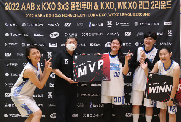 고혈압은 18일 강원도 홍천군 홍천여고 체육관에서 열린 2022 AABxKXO 3x3 홍천투어 와일드 홍천과의 여자오픈부 결승에서 9-5로 승리했다. 저득점 양상 속에서도 팽팽함이 유지됐던 결승전에서 더 나은 집중력을 발휘해 챔피언의 자리에 오른 건 고혈압이었다.