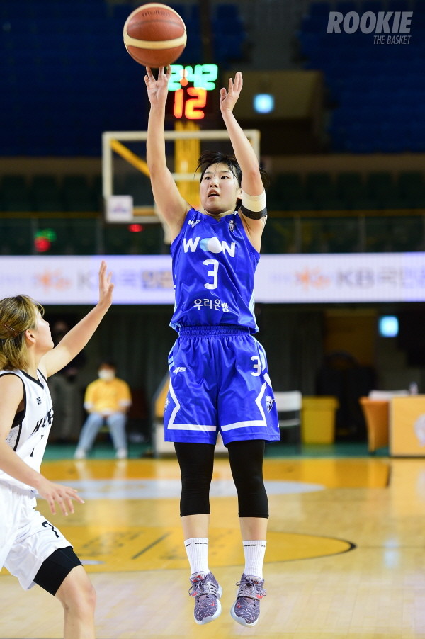 김은선이 활화산 같은 득점력으로 우리은행의 2연승을 이끌었다.