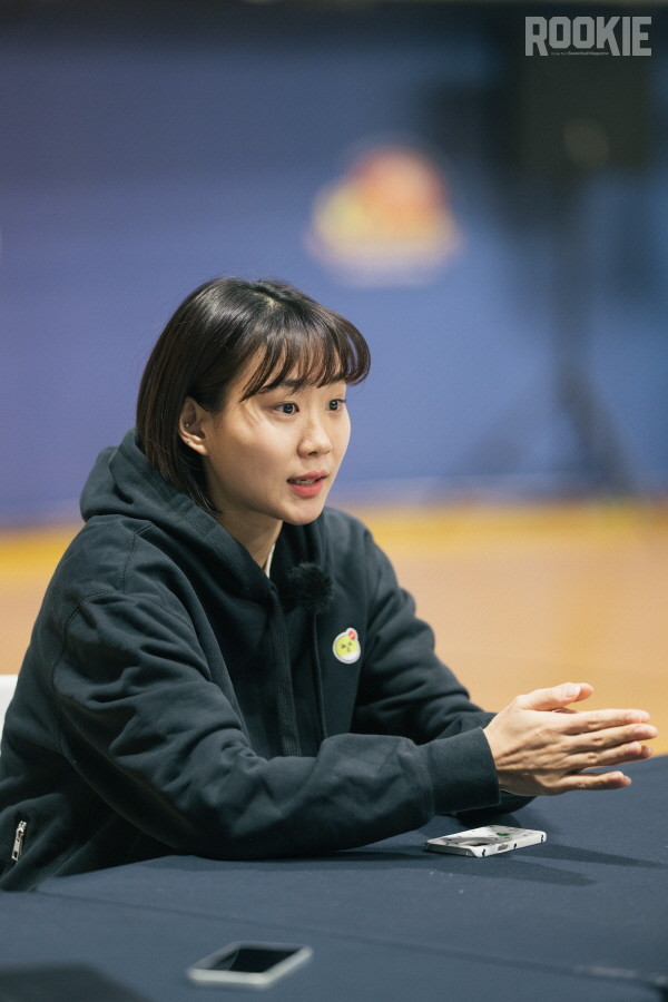 “우리은행이랑 경기를 할 때는 몸을 풀 때부터 웃기면서 슬펐어요. 왜냐면 (김)단비 언니를 제가 너무 잘 아니까 일부러 이쪽을 보지 않으려고 하는 것이 느껴지더라고요. 그리고 언니를 상대로 만난 것이 거의 없었는데 첫 경기에서 블록슛을 당하고 나니까 어이가 없을 정도더라고요.(웃음) 상대가 단비 언니랑 경기를 할 때 이런 느낌이었고 ‘어린 선수들이 레이업을 잘 쏘지 못하는 이유가 있었구나’라고 느꼈어요.”