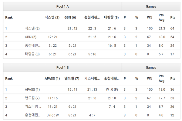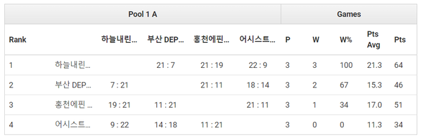 하지만 두 팀 모두 선전했다. 홍천에핀은 하늘내린인제를 상대로 경기 막판까지 19-19의 접전을 펼친 끝에 19-21로 석패했고, 부산 DEPOT134는 1승1패 동률 상태에서 만난 홍천에핀을 21-11로 대파하며 조 2위로 다시 한번 결승 진출에 성공했다.