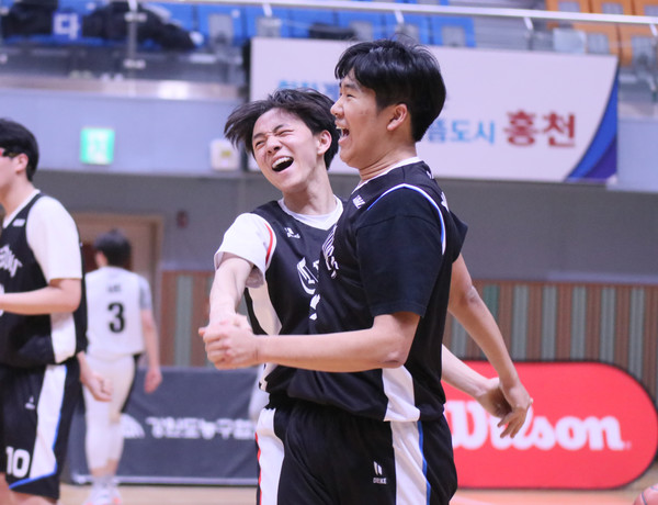 25일 강원도 홍천군 홍천종합체육관에서 열린 2023 세인트폴 국제 청소년 농구대회 남자고등부 예선에서 민족사관고등학교가 예상 밖의 실력을 자랑하며 2연승에 성공했다.