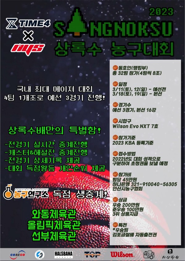 오는 3월11일과 12일, 18일과 19일 총 나흘간 안산와동체육관, 올림픽체육관, 선부체육관 등 3개 체육관에서 개최되는 2023 안산시협회장배 상록수 농구대회(이하 안산상록수배)는 김포금쌀배, 홍천무궁화배와 함께 한국을 대표하는 3대 생활체육 농구대회다. 지난 2019년 이후 4년 만에 재개되는 이번 대회는 안산시체육회, 안산시농구협회가 주최, 주관하고 윌슨, 타임4, 한도병원, NYS, 농구연구소가 후원한다.