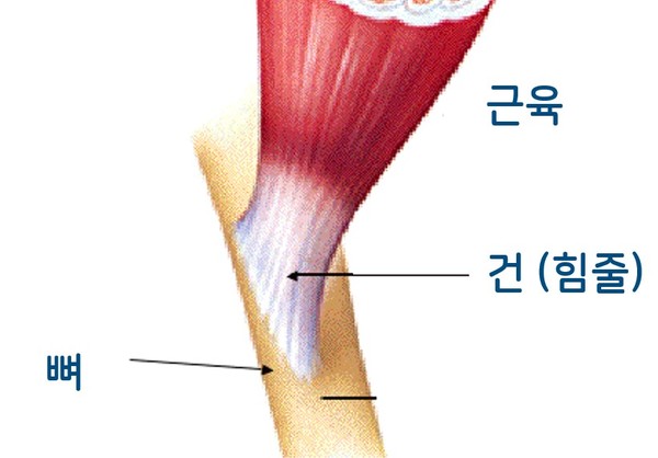 A. 슬개건은 우리 무릎의 앞쪽에 있는 슬개골의 아래쪽에 붙어 있는 구조입니다. 슬개건의 구조를 이해하기 위해서는 건(힘줄. tendon)을 이해하는 것이 중요합니다. 건은 근육에서 연장되어 뼈에 부착하는 구조물을 말하며 근육이 수축과 이완을 할 때 그 힘을 뼈에 전달하여 관절 운동을 가능하게 하는 구조입니다.