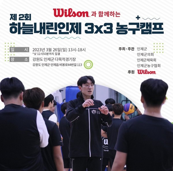 지난해 한 차례 3x3 농구 캠프를 개최했던 하늘내린인제 3x3 농구단(이하 하늘내린인제)이 오는 26일 강원도 인제군 인제다목적경기장에서 윌슨과 함께하는 제2회 하늘내린인제 3x3 농구 캠프를 개최한다.