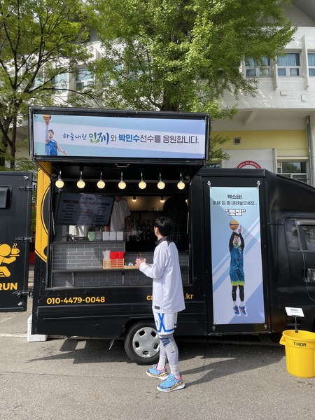 이번 코리아투어 서울대회 출전을 위해 15일 오전, 경기장으로 향하던 박민수에게 오랜 팬의 메시지가 전송됐다고 했다. "고생하시는 3x3 선수, 관계자들을 위해 커피차를 보낼 테니 맛있게 드셔달라"라는 깜짝 메시지였다고 한다.