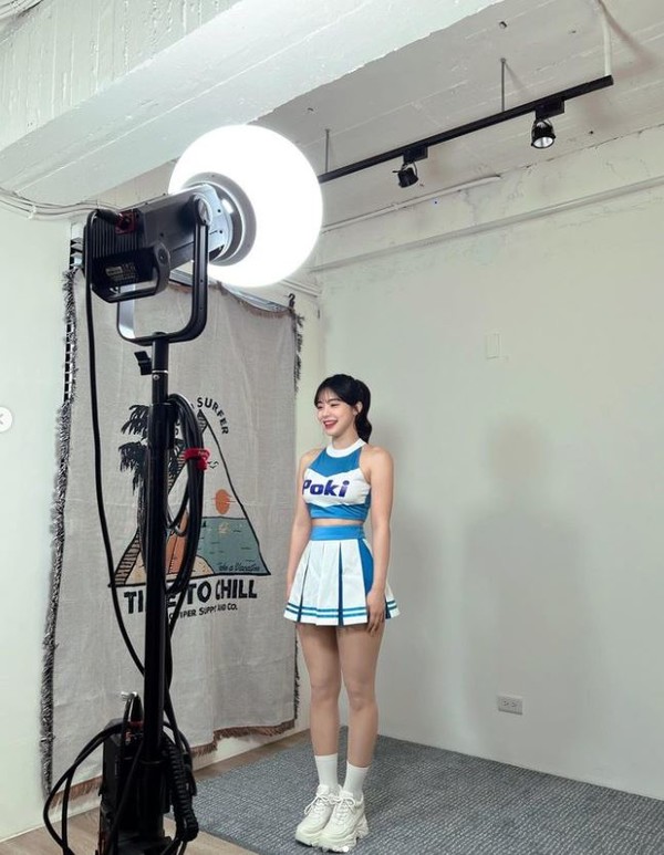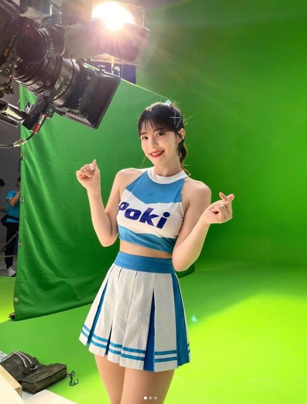 사진 속 이다혜 치어리더는 촬영장에서 카메라를 향해 환한 미소를 짓고 있다. 의상에는 광고 제품 문구가 적혀있다. 이다혜 치어리더 특유의 상쾌한 분위기가 묻어난다.