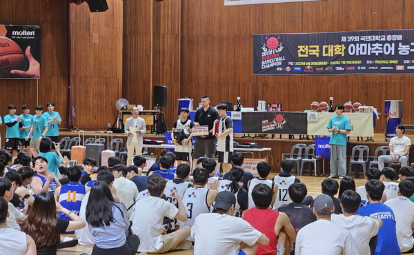 지난 9일 국민대학교 체육관에서 열린 제 39회 국민대학교 총장배 전국 대학 아마추어 농구대회가 성황리에 종료된 뒤 대규모의 시상식이 진행되었다.