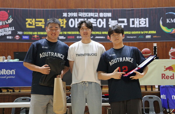 지난 9일 국민대학교 체육관에서 열린 제 39회 국민대학교 총장배 전국 대학 아마추어 농구대회가 성황리에 종료되었다. 남자부 3위를 차지한 남서울대 아우트런스가 단체사진을 촬영하고 있다.
