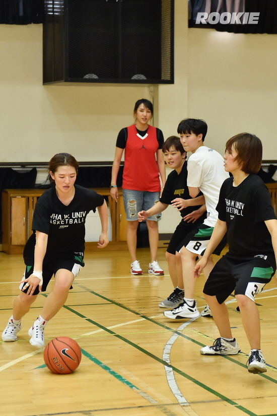 아마추어 농구 동아리인 만큼 인터뷰도 진행하며 원포인트 레슨도 해주기로 했다. 그래서 국가대표 출신인 김은혜 KBSN 스포츠 해설위원이 함께했다. 농구를 사랑하고 즐기는 일반인들을 위해 기초적인 부분을 어느 정도 가르쳐주면 될 것 같았다. 그런데 웬걸... 이 학생들, 장난이 아니다.