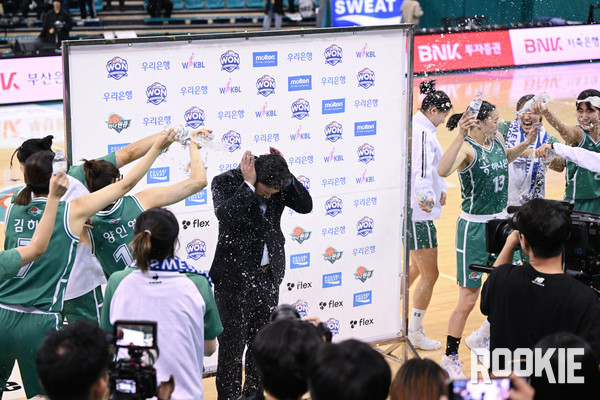 “경기가 끝나고 (신)지현이가 방송 인터뷰를 준비하는데, 다른 애들이 와서 저한테 물어보는 거예요.” 김정은이 말했다. “물 뿌리는 세리머니를 해도 괜찮겠냐고요. ‘그게 왜?’하고 물었더니, 우리 애들 하는 말이 저 물 뿌리는 세리머니를 한번도 안 해봤대요. 맨날 6라운드에만 이겨서 저럴 분위기가 아니었다고…”