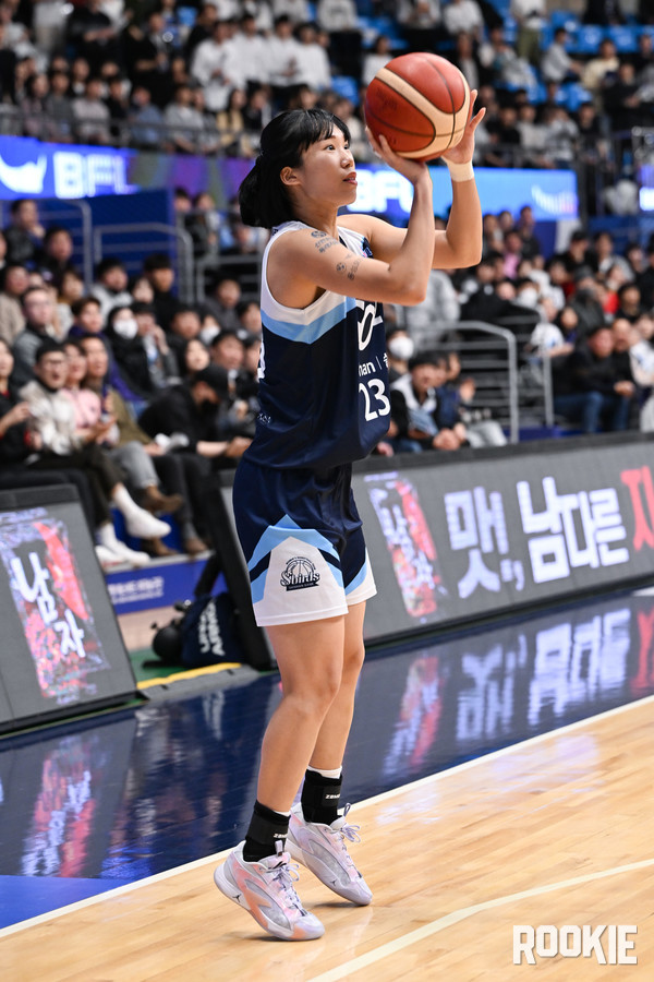 하지만 신장에 비해 7cm나 긴 매력적인 윙스팬, 더불어 드래프트 컴바인 6개 부문 중 절반인 3개 부문에서 전체 1위를 차지한 여자농구에서 흔치 않은 운동 능력, 그리고 올시즌 리그에서 가장 압도적 성공률인 47%의 3점슛까지. 코트를 밟을 때마다 이다연은 벤치를 향해 기록지로 질문을 적어 보낸다.