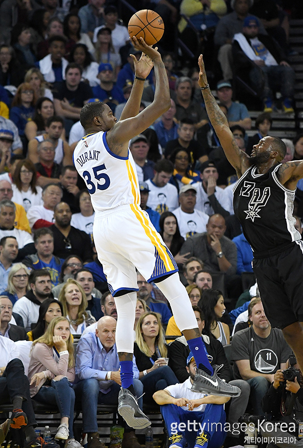 기어이 역전에 성공했다. 99-100으로 근소하게 뒤진 4쿼터 8분 1초께 듀란트의 골 밑 득점이 림 그물을 흔들었다. 코트 중간에서부터 빠르게 퍼스트 스텝을 딛으며 샌안토니오 빅맨진의 컨테스트를 무력화시켰다. 1쿼터 초반 이후 골든스테이트가 이날 경기 처음으로 리드를 잡는 데 한몫했다.