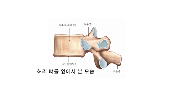 아래의 그림은 척추뼈를 옆으로 본 모습입니다. 당시 아반도처럼 등 또는 허리로 그대로 바닥에 착지하게 되면 극돌기나 척추경, 뼈의 뒷부분에 골절이 발생할 가능성이 높고, 엉덩이로 착지하게 되면 충격이 척추체로 오기 때문에 요추 앞부분에 골절이 발생할 가능성이 높습니다.