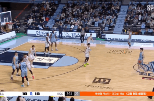 이정현이 포스트에서 볼을 잡으며 아이솔레이션을 노린 뒤 전성현이 플레어 스크린을 받아 반대 윙으로 이동하며 3점 기회를 노리는 약속된 공격도 나왔다.
