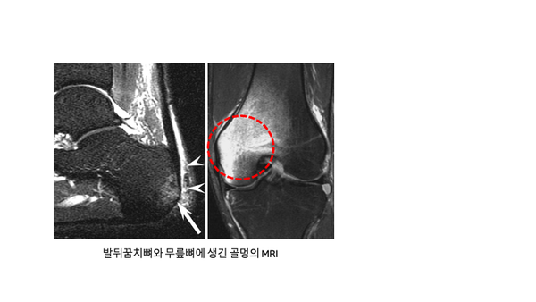 과거에 MRI가 발달하기 전에는 골멍이라는 진단명이 없었습니다. X-ray나 CT에서 뼈의 구조는 정상이기 때문에 “괜찮다”고 진단을 하고 통증이 있는 선수를 다시 훈련에 복귀시키는 경우가 많았을 겁니다. 골멍의 사전적 정의는 “뼈의 미세압박 손상”으로, MRI가 스포츠의학에서 중요한 진단기구로 자리잡으면서 골멍은 현재 가장 흔한 스포츠손상 중 하나가 되었습니다.