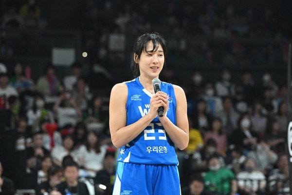 우리은행 김단비가 착석과 동시에 최근 WKBL의 가장 큰 화두인 아시아쿼터제에 대한 질문을 던졌다.