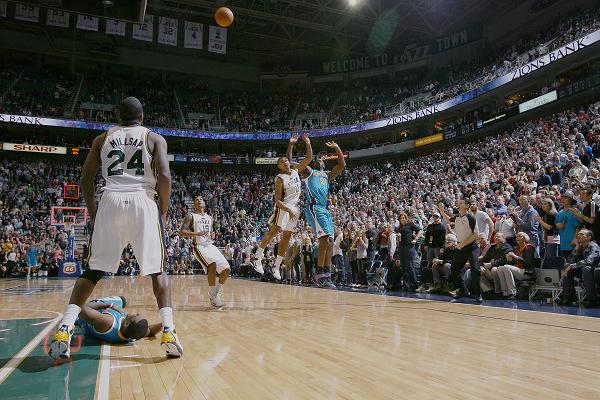 공은 백보드에 맞고 림 안으로 빨려 들어갔다. 극적인 버저비터였다. 105-105 동점. 유타의 타이론 코빈 감독은 믿을 수 없다는 표정을 지었다.