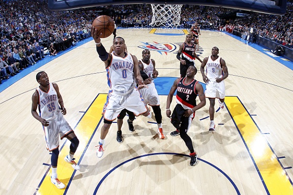 오클라호마시티는 지난 시즌 50승 32패로 플레이오프 막차를 탔다. 이번 시즌에는 55승으로 4번 시드를 확보, 1라운드 홈 코트 어드밴티지를 따냈다. 그들은 러셀 웨스트브룩의 폭발적인 성장에 힘입어 더 강력한 전력을 구축했다. 케빈 듀란트는 역사상 최연소로 득점왕을 2연패한 선수가 되었다.