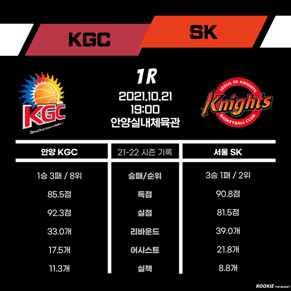 KGC와 SK의 시즌 첫 맞대결이 펼쳐진다.