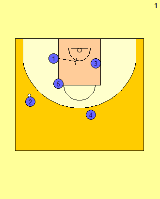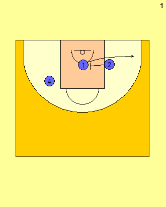 ▲ O2의 움직임을 주목해보자. 일단 O2는 O1이 움직이도록 스크린을 걸어준다. 수비수는 O1에게 시선이 쏠릴 수밖에 없다. 이때 O2가 갑자기 O4의 스크린을 받아 나오게 된다. 첫 번째 스크린을 속임수였고, O2가 밖으로 나오는 게 핵심이었다.