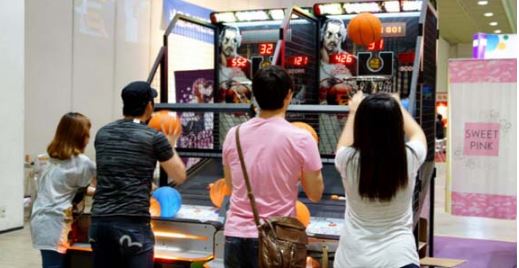 오락실이나 놀이공원 등에서 쉽게 볼 수 있는 것이 농구 게임기다. 이 게임기는 쏟아져 내려오는 농구공을 던져 위쪽에 달려있는 림 안에 넣는 단순한 게임으로 쉴새없이 공을 던지며 슛을 난사하는 쾌감을 이용자들에게 선사한다, 농구를 좋아하는 남성 뿐만 아니라 농구를 할 줄 모르는 여성들도 쉽게 즐길 수 있어 놀이공원, 오락실 등에서 인기가 매우 높다.