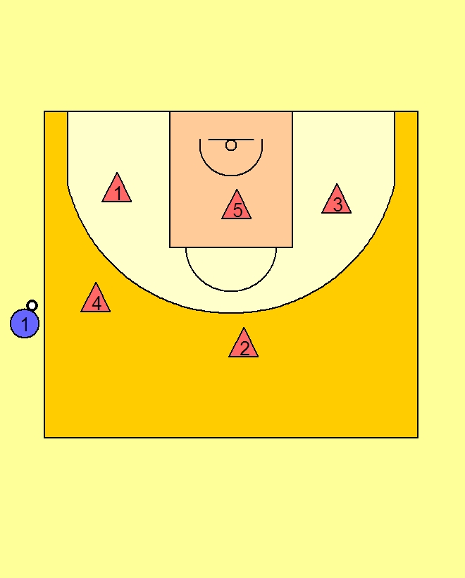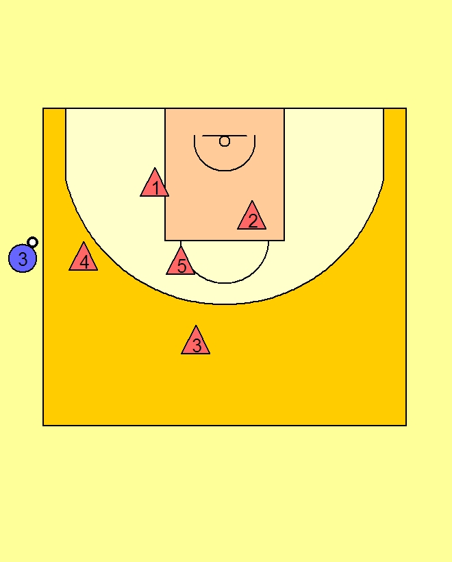 빅맨(X5)은 골밑 안쪽을 지켜야 한다. 너무 앞쪽으로 나와 있다면 상대가 돌파할 때 공간을 내줄 수 있게 된다. 페인트존을 지키면서 상대의 쉬운 득점을 내주지 않아야 한다.